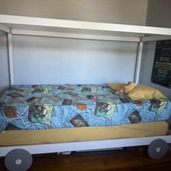 Canopy wood car Bed With mattress$60Chicopee, MA