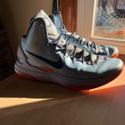 Kd 5 Ice Blue 2012 Squadron Orange Size 11 small paint chipping, small tears, small leather scuffs. Replacement box.$125West Springfield, MA