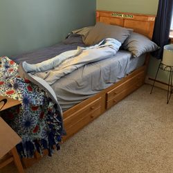 Twin Size Bed Frame With Large Drawers With Like New Mattress $160South Hadley, MA