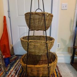Vintage Wicker and Iron Three-Tiered Basket Stand$150Lunenburg, MA