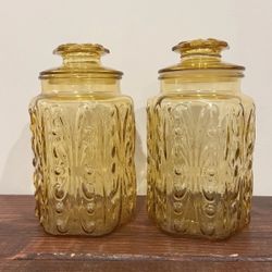 LE Smith Imperial Amber Glass Scroll Canister Jar Set 2 Pair Vintage MCM 70s$40Southbridge, MA