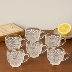 LE Smith USA 1920s Set Of 6 “Aztec” Clear Glass Cups, 3 x 2.5”$35Natick, MA