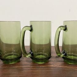 Hazel Atlas Beer Glass Mug Stein Avocado Green Set Lot 3 Vintage MCM 70s Retro$40Southbridge, MA