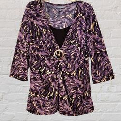 Purple multi-shade swirl design empire waist top blouse, 'Essentials' Sz. 1X$11Mendon, MA