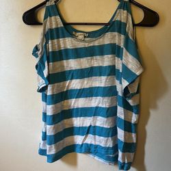 Striped White & Blue Open Cold Shoulder Top Slightly Cropped$25Ashland, MA