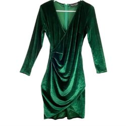 Forrest Green Velvet Wrap Asymmetrical Dress Dark forrest green dress featuring a super soft velvet material, long sleeves, a wrap top that creates a$44Ashland, MA