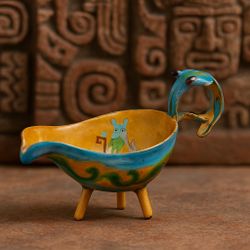 Peru 1950s Folk Art Enamel Copper Tripod Vessel Elephant–Serpent Motif, 4x2.5”$45Dover, MA