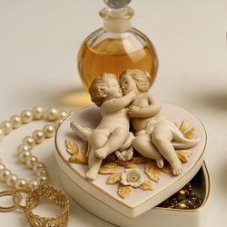 Porzellanfabrik Kalk Germany 1950s Bisque Cherub Heart Trinket Box, 5.5”$45Dover, MA