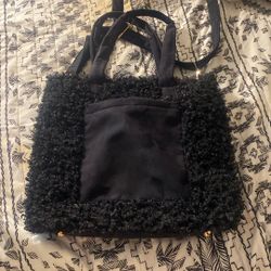 This is a black curly faux fur tote bag with a laptop sleeve.$40Worcester, MA