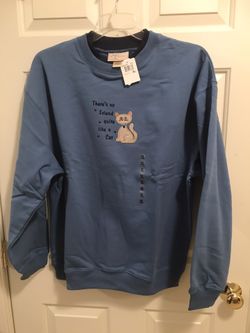 Woman’s blue sweatshirt with cat appliqué XL NWT$8Sturbridge, MA