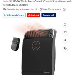 Lasko 18" 1500W Whole Room Ceramic Console Space Heater with Remote, Black, CC18306.....NEW - OPEN BOX - with REMOTE $65Baltimore, MD