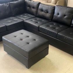 Brand new black faux leather Sectional Sofa with storage chaise and storage ottoman$995Wheaton-glenmont, MD