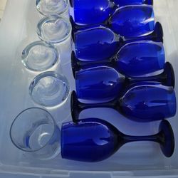six impression glasses (whiskey glasses) 8 blue goblets$25Glen Burnie, MD