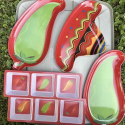 8 Piece Set Of Festive Chili Pepper Themed Serving Trays/Curtains/Fabric$20Street, MD
