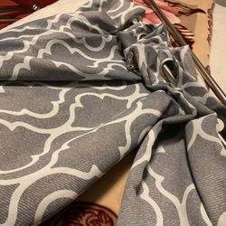 Two Grey And White, Long Draped Curtains, With 3 Curtains Rods New ( All For $50) (NO SHIPPING) (80” High X 50” Wide)$50College Park, MD