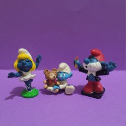Vintage Schleich Smurfs Conductor Papa Smurf, Ballerina Smurfette, Baby Smurf.