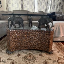 Maitland Smith bronze and wood figural elephant table with elephant bronze feet, glass top 24"h x 50"$500Stevensville, MD