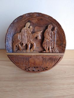 Beautiful Teak Olive Wood Carving Folk Art Relief Mary Jesus Donkey Carving Picture Bethlehem Wall Hanging Flight Egypt History$35Severna Park, MD