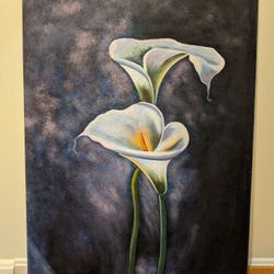 Original Painting Wall Art White Calla Lilies on Blue Signed Flowers$45Columbia, MD