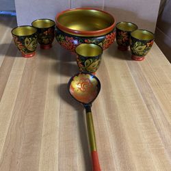 1950s Vintage Khokhloma Mid Century Serving Hand Painted Wood Lacquerware Sets. $65New Carrolltn, MD