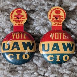 Vintage Vote UAW CIO United Auto Workers Set of two 1-1/2" Pins$10Joppatowne, MD