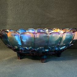 Vintage Carnival Glass Bowl Blue Iridescent Harvest Grape Scallopped$54Chstnt Hl Cv, MD