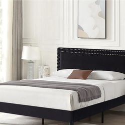 Black Upholstered Full Bed Frame + Mattress$200Columbia, MD