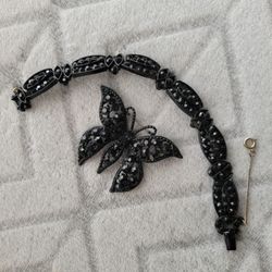 Vintage Weiss Black Rhinestone Butterfly Brooch and Japanned Rhinestone Bracelet $12Forest Hill, MD