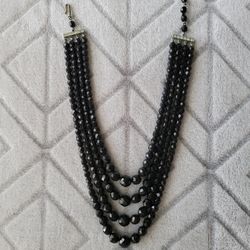Vintage Laguna 4-strand Black Faceted Crystal Glass Beaded Necklace/choker $25Forest Hill, MD