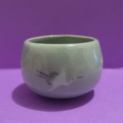 Vintage Korea celadon crackle glaze flying crane and cloud cup.$17Adelphi, MD