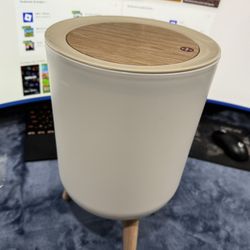 Modern White Trash Can With Lid And Wooden Legs Matte Finish Indoor Use $37Adelphi, MD