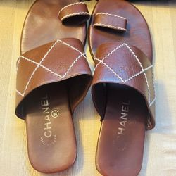 Chanel Leather Peep Toe Slides Size 9 $250$250Laurel, MD