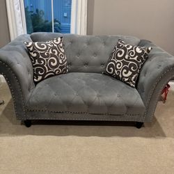 Style: Tufted loveseat sofa with a curved back and nailhead trim. • Material: velvet (microfiber velvet). • Color: Charcoal gray • Style: Modern/Con$750Columbia, MD