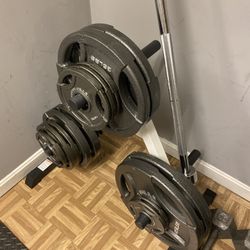 Entire Steel Plate Weight Set With Benching Bars And 2 Dumbells$75Silver Spring, MD