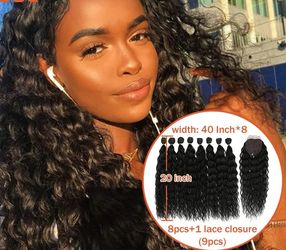 Water Wave Hair Bundles With Closure Synthetic Hair Extensions Ombre Blonde Silver Grey Hair 9Pcs/Pack 20inch Fiber$50Landover, MD