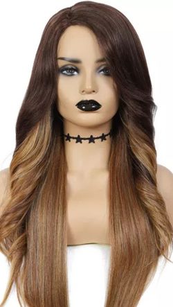 Ombre Black Blonde Synthetic Hair Wigs Straight Long Lace Wig With Bangs Middle/Side Part Heat Resistant Black Women Wig$60Landover, MD