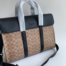 Coach Khaki Signature Canvas/Refined Calfskin Leather Portfolio Bag Tote $190Alexandria, VA