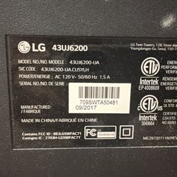 LG 43” 4K Smart TV (Modelo 43UJ6200)$120Rockville, MD