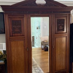 Large Antique Armoire / Wardrobe — Solid Mahogany, Hand-Carved, 3-Door with Mirror$650Falls Church, VA