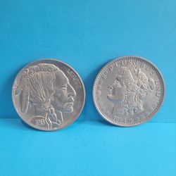 Ameri Coin Die Cast Aluminum Products One Dollar 1884 and Five Cents 1913 - 3" Diameter. $15Adelphi, MD