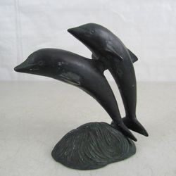 Dolphins Solid Brass Painted Sculpture San Pacific International
