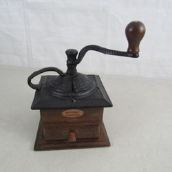Vtg Mr. Dudley International Hand Coffee Grinder Cast Iron Wood Mill