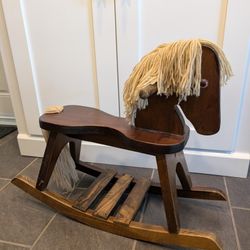 VINTAGE SOLID WOOD ROCKING HORSE - Woods of America Style Yarn Hair Ex Con$75Silver Spring, MD
