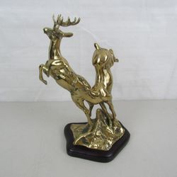 Vintage Brass Deer Buck & Doe Lacquer Coated Statue-11" Tall