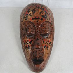Balinese Indonesian Vtg. Hand Carved Painted Wooden Mask-13 1/8" Tall
