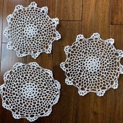 vintage Hand Made 3 White Cotton crocheted Lace doily. Size 11”$22Lorton, VA