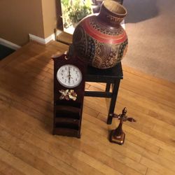A Beautiful African Case On A Small Black Table, A Nice Clock And A Cross $25Greenbelt, MD