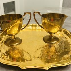 Vintage bronze coffee pot creamer and sugar bowl and plate and big bowl too.$300Rockville, MD