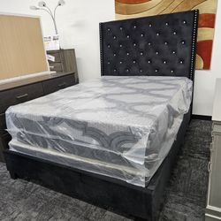 Brand New Stock Black High Headboard Rhinestone Queen Size Bed Frame Special$395Silver Spring, MD