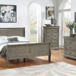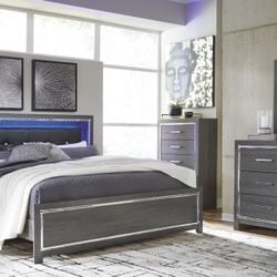[SPECIAL] Lodanna Gray LED Panel Bedroom Set
